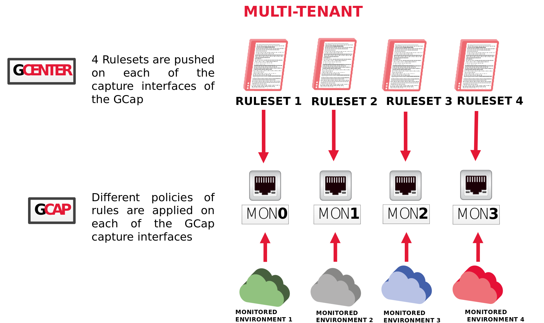 Then each of these rulesets will be applied to its capture interface: this is the multi-tenant configuration.
