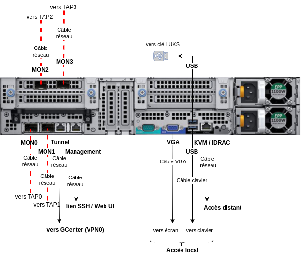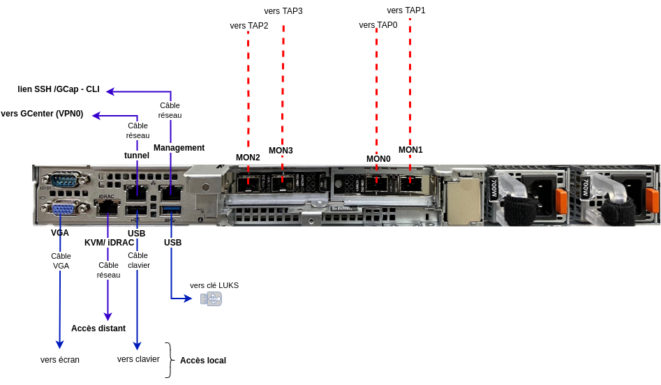 sur un serveur Dell, ce connecteur est appelé iDRAC et est noté sur le schéma KVM/IDRAC GCap
